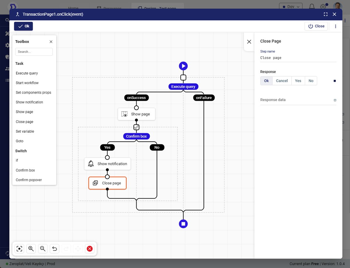 You can write vanilla JavaScript and SQL anywhere in Flowfy, whether you're manipulating component data with a native API or adding custom queries and logic.
